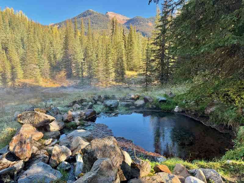 A remote, rarely visited hot spring on Grayling River in the Hyland Plateau.